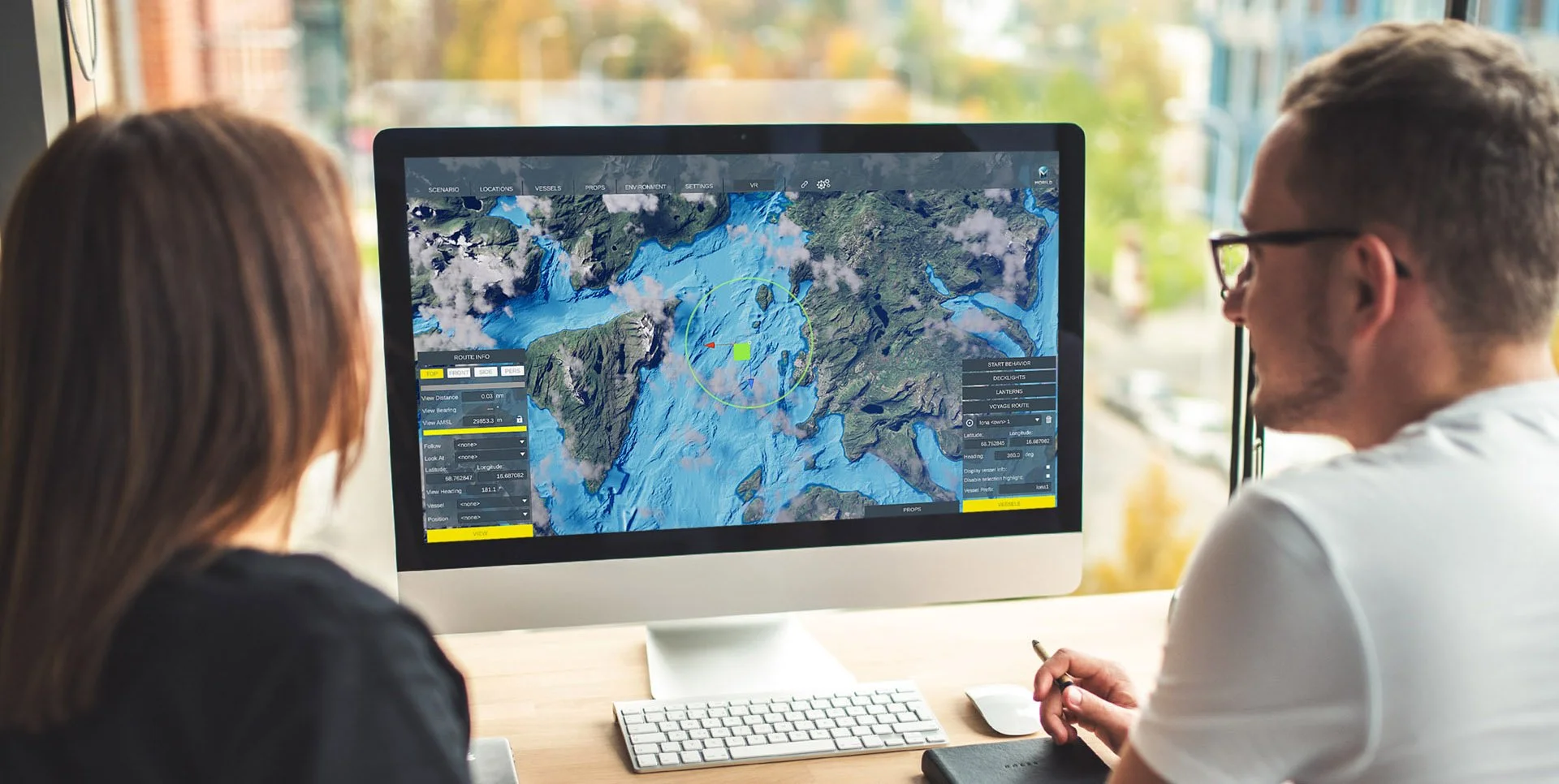 Our Scenario Builder is a robust tool designed for real-time creation, management, and manipulation of intricate training scenarios. It also serves as an advanced instructor application during training and a playback analysis tool during debriefing sessions. Many clients also utilize it for operation planning. It boasts real-time adjustments of weather and sea state, a dynamic daylight system, sophisticated voyage route editing, and much more.